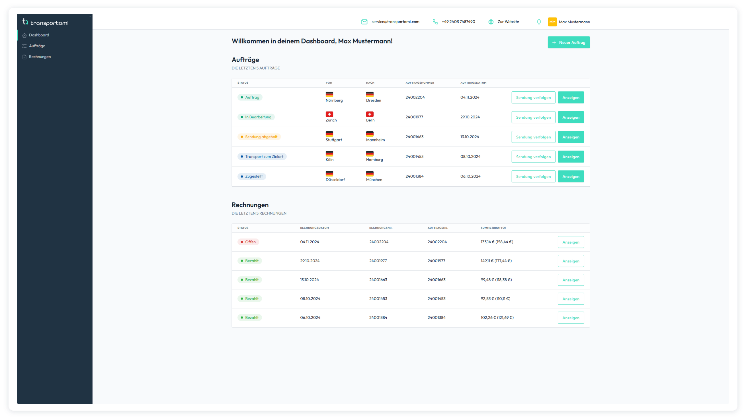 Schnell, einfach, zuverlässig: Bei transportami buchst Du Deinen Stückguttransport in nur wenigen Minuten online – ohne Anmeldung und mit sofortiger Preisübersicht. Unser europaweites Netzwerk sorgt dafür, dass Deine Transporte pünktlich und sicher ankommen. Digital effizient und trotzdem persönlich: Wir stehen Dir jederzeit per Chat, Telefon oder E-Mail zur Seite. Probier es aus und erlebe, wie unkompliziert Transport sein kann!